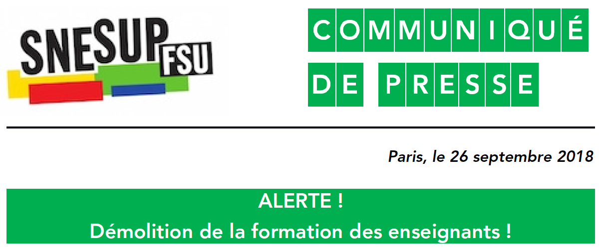 ALERTE ! Démolition de la formation des enseignants ! - Communiqué de presse, 26 septembre 2018