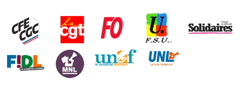 C’est pourquoi les organisations syndicales CFE-CGC, CGT, FO, FSU, Solidaires, MNL, UNEF, UNL et FIDL appellent à réunir des assemblées générales pour continuer et amplifier encore