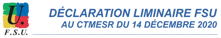 Déclaration FSU au CTMESR du 14 décembre 2020