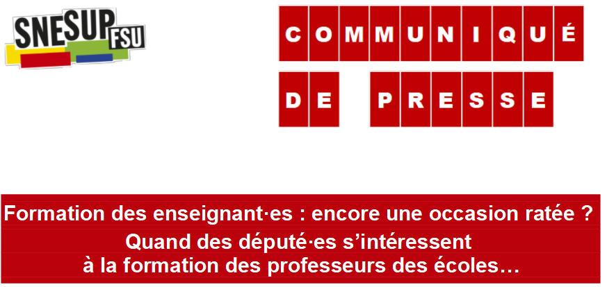 Formation des enseignant·es : encore une occasion ratée ? Quand des député·es s’intéressent à la formation des professeurs des écoles… - Communiqué de presse du SNESUP-FSU du 29 novembre 2022