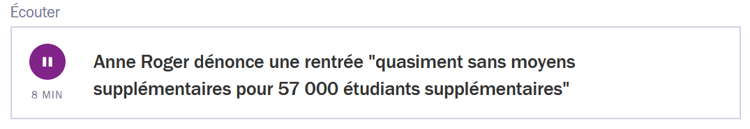 Autre conséquence du passage en zone d'alerte maximale, la réduction de la jauge dans les universités de Paris et de la petite couronne où les amphithéâtres et les salles de classe ne pourront être remplis qu'à 50% de leur capacité. A noter que la mesure concerne aussi les universités situées en zone d'alerte renforcée. Invitée de ce journal, Anne Roger, cosecrétaire générale du Snesup-FSU, majoritaire dans l'enseignement supérieur. Anne Roger approuve cette réduction de la jauge universitaire, mais demande des moyens supplémentaires pour améliorer l'enseignement à distance.