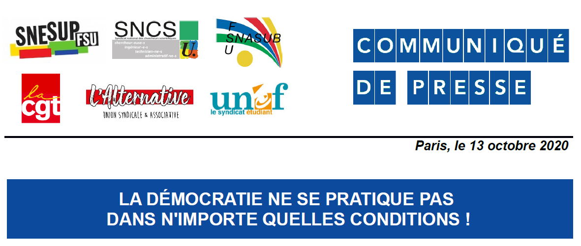 La démocratie ne se pratique pas dans n'importe quelles conditions ! - Communiqué de presse du 13 octobre 2020