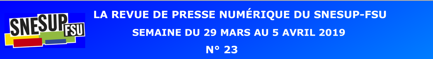 LA REVUE DE PRESSE NUMÉRIQUE DU SNESUP-FSU - Semaine du 29 mars au 5 avril 2019 - N° 23