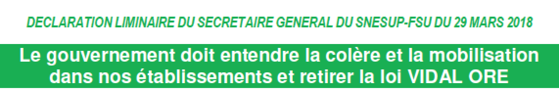 « Madame la Ministre, entendez-vous la colère qui monte ? » Déclaration du secrétaire général du SNESUP-FSU le 29 mars 2018
