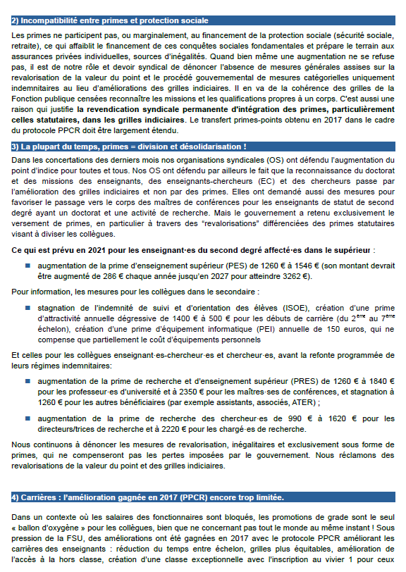 Suite à la loi de Transformation de la Fonction Publique de 2019 et la Loi de Programmation de la Recherche de fin 2020, le SNESUP-FSU et le SNEP-FSU ont rédigé à l’intention des enseignants de statut second degré le texte ci-joint pour traiter des questions de rémunérations, primes et carrières et des modifications profondes apportées aux commissions paritaires et à leurs prérogatives.