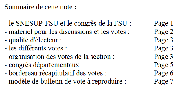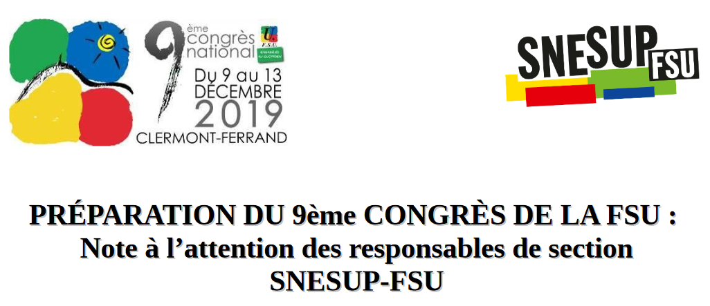 Note du 17 décembre aux sections pour l'organisation du vote d'orientation FSU 2019