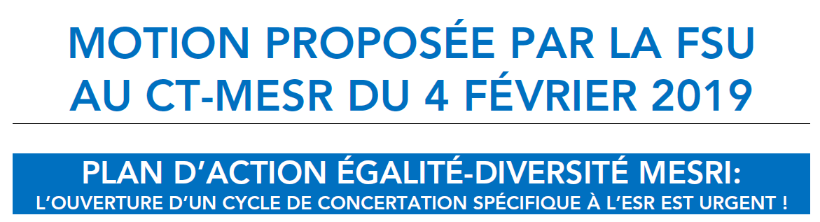 PLAN D’ACTION ÉGALITÉ-DIVERSITÉ MESRI - MOTION DU CT-MESR DU 4 FÉVRIER 2019