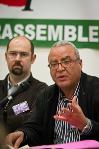 11h21 : lors de son discours, S Tassel évoque la situation en Tunisie. Le congrès se lève pour saluer Sami Aouadi, universitaire et syndicaliste tunisien invité à l'occasion de ce congrès.
