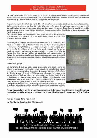 Communiqué de presse du 11 mai 2018 : HALTE AUX VIOLENCES DU GOUVERNEMENT SUR LES CAMPUS UNIVERSITAIRES Article